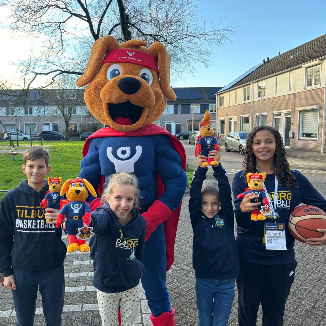 Cluppie mocht tijdens de verkoopperiode van de Grote Clubactie meelopen met basketballers van basketbalvereniging High Five uit Tilburg. Net als een basketball stuiterde Cluppie mee. De gouden tip die hij meekreeg van de basketballers: ‘Blijf altijd lachen!’ Lees hier zijn verhaal.