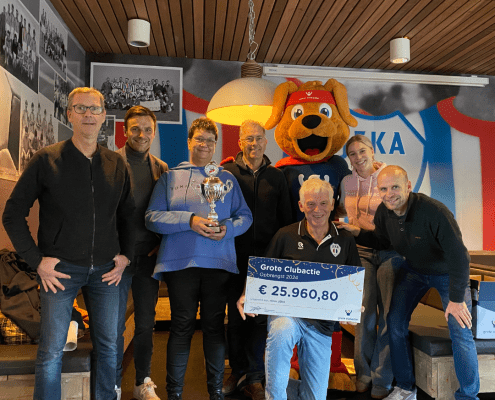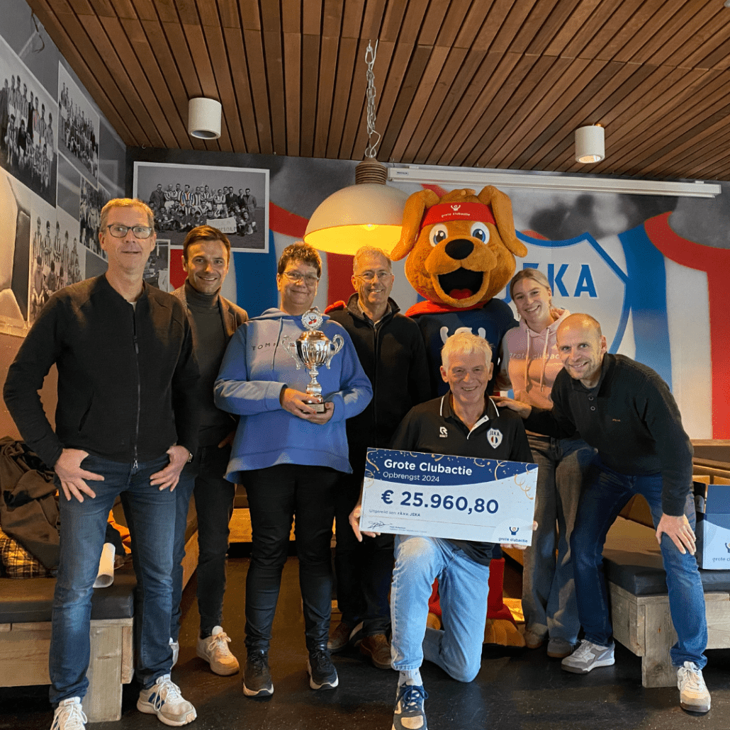 Tijdens de vier-het-succes periode mocht Cluppie langskomen bij voetbalvereniging JEKA in Breda. De voetbalclub had namelijk een evenement gepland staan waarbij topverkopers in het zonnetje werden gezet. In een volle, gezellige kantine werd Cluppie begroet door jong en oud! Lees Cluppie’s verhaal hier.