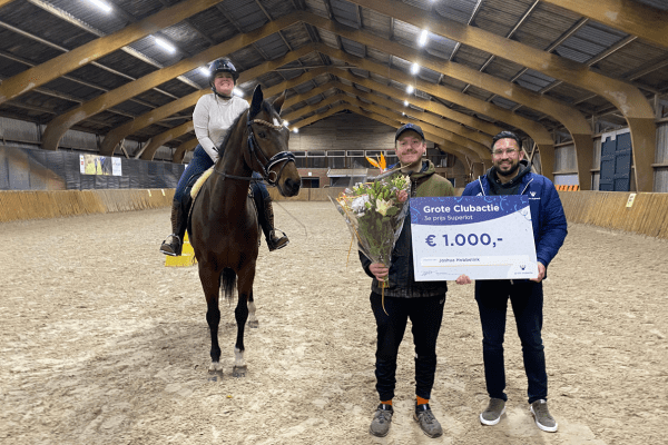 De derde Superlot-prijs is uitgereikt in Overijssel bij paardrijvereniging Hasselt. Prijswinnaar Joshua kocht in totaal 2 Superloten bij de vereniging waar zijn vriendin paardrijles heeft. Hij wist natuurlijk niet dat op één van zijn Superloten een grote prijs zou vallen. Collega’s Marijke en Otis verrasten Josha én de vereniging met de derde prijs van de Superlot-trekking.