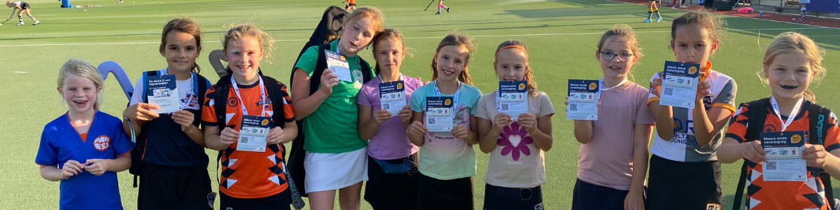 Door er een feestelijk moment van te maken, begint het gelijk te leven onder (jeugd)leden. Het zorgt voor meer betrokkenheid én saamhorigheid. Als je daarnaast ook tussenstanden en voortgangen blijft delen, zorg je ervoor dat jullie actie floreert. HC Schiedam ontving van ons -net zoals alle deelnemende verenigingen- gratis posters, een vlaggenlijn en een groot spandoek. Door ze op te hangen in het clubhuis of langs de velden weet iedereen dat jullie meedoen!