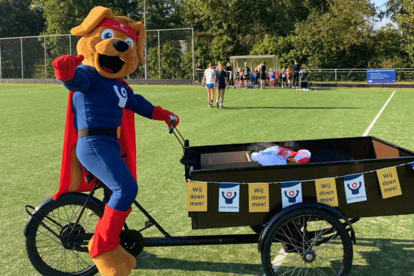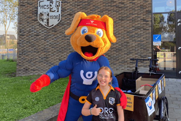 Hockeyclub HC Schiedam pakte uit bij van het uitdelen van de verkoopmaterialen van de Grote Clubactie. Zo gingen ze met een coole bakfiets langs alle velden waar de jongste jeugd traint. In de bakfiets zaten alle verkoopmaterialen, van verkoopkaart met keycords tot Superloten. Clubcoördinator Sjoerd nodigde mascotte Cluppie uit om het helemaal compleet te maken.