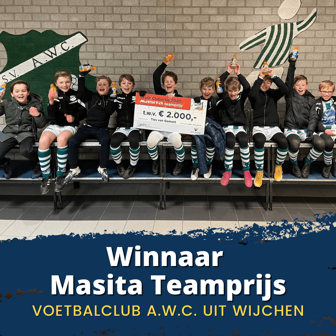 Lotenverkoper Ties van sv AWC uit Wijchen viel in de prijzen bij de Grote Clubactie: hij won de Masita teamprijs t.w.v. € 2.000,-. Hiermee kan zijn hele team in het nieuw gestoken worden. Gisteravond werd Ties en zijn team verrast op de voetbalclub tijdens de training.