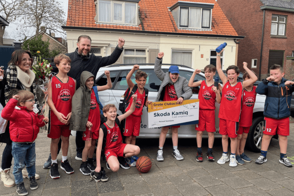 De tweede prijs van de Grote Clubactie is uitgereikt bij sporthal de Doelen in Breda. Meneer Speetjens kocht een lot van zijn zoon Rafael, jeugdspeler van ‘De Barons Breda’. Hij werd verrast door directeur Frank Molkenboer, die aan kwam rijden in de gloednieuwe Skoda Kamiq.