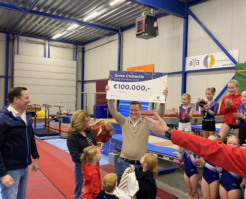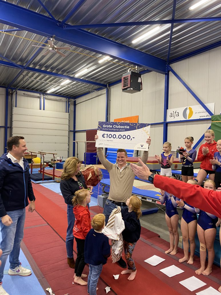 Op vrijdag 22 november ging directeur Frank Molkenboer op bezoek bij Turn- en sportcentrum Hardenberg om Grote Clubactie Medailles uit te reiken. Als grote verrassing kwamen ambassadeurs Stan van den Dobbelsteen en Jochem van Gelder langs want er was nog meer te vieren…