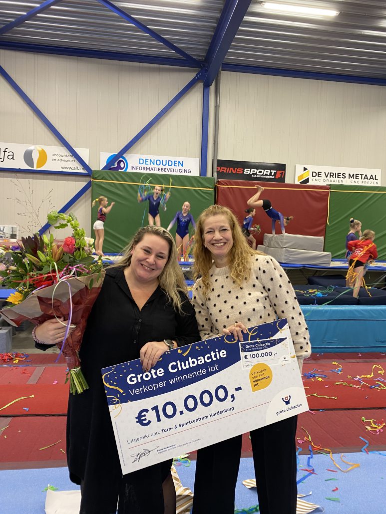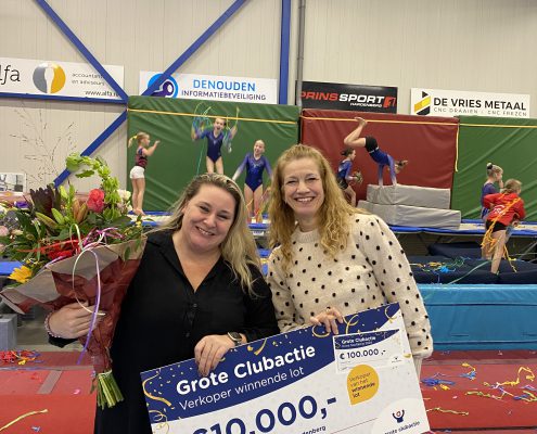 Turnlid Tess verkocht namelijk het winnende lot van de extra hoofdprijs van €100.000,- aan haar vader. De vereniging wint hiermee bovendien €10.000 éxtra voor de clubkas. Dubbel feest dus!