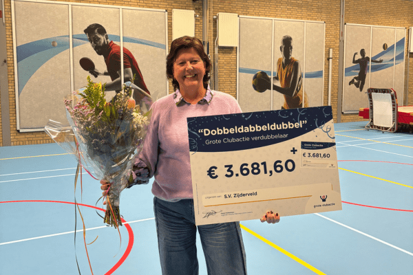 S.V. Zijderveld deed dit jaar voor het eerst mee met de Grote Clubactie. Ze haalden uiteindelijk het prachtige bedrag van €3.681,60 op voor de clubkas. Deze opbrengst zetten ze in voor de voorbereidingen van hun 50-jarig jubileum in 2027. Dankzij de verdubbeling kunnen ze nu extra groot uitpakken. Dat belooft een schitterend jubileum te worden!
