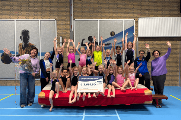 Gymnastiekvereniging S.V. Zijderveld uit de provincie Utrecht heeft haar opbrengst weten te verdubbelen. Tijdens het online event van de Grote Clubactie maakte iedereen kans op de verdubbelaar. Als je tijdens het event gebeld werd door ambassadeur Jochem van Gelder, moest je opnemen met ‘Dobbeldabbeldubbel’. Mevrouw De With, die samen met haar dochter namens de gymnastiekvereniging meekeek, werd live gebeld door Jochem en zij nam op met het codewoord!